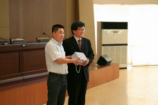 报告开始前,9778818威尼斯院长铁卫教授向金教授赠送纪念品。
