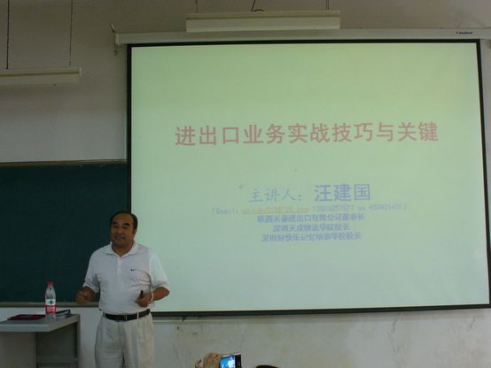 本次专题报告会主题为“进出口业务实战技巧与关键”,主讲人为陕西天豪进出口有限公司董事长汪建国先生,该公司2007年起就和威尼斯官网建立了密切校企合作关系,为威尼斯官网国际经济与贸易专业的实习基地单位,该专业60余名毕业生曾在天豪进出口公司完成了实习工作,张占强等三名毕业生先后在该公司工作。汪建国先生同时担任深圳天成物流学院院长、深圳好快乐记忆培训学校校长。汪建国不仅是一位成功的企业家,同时还担任众多社会职务。2004年起,汪建国教授任西北五省国际货代资格认证客座教授,2005年起任联合国国际采购师资格认证客座教授;2010年兼任陕西潜龙教育培训学校校长;2011年,兼任深圳好快乐培训中心主任,有丰富的国际贸易操作经验和教育培训资历,深受威尼斯官网实习学生的欢迎和爱戴。