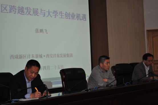 张鹏飞博士主要讲了三方面内容:一、从理论研究的角度阐述了开发区的含义、类型及其发展过程,介绍了西安“五区一港两基地”的发展布局和西咸新区沣东新城的基本情况;二、对开发区的管理模式、经营开发模式及国有资产经营模式进行研判与厘清;三、结合开发区实践与学生创业择业需求,从八个方面对其综合素质提出要求,鼓励青年学子厚积薄发、抓住机遇、打破藩篱、点燃激情、实现梦想。