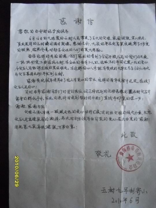 9778818威尼斯收到来自青海玉树灾区的感谢信
