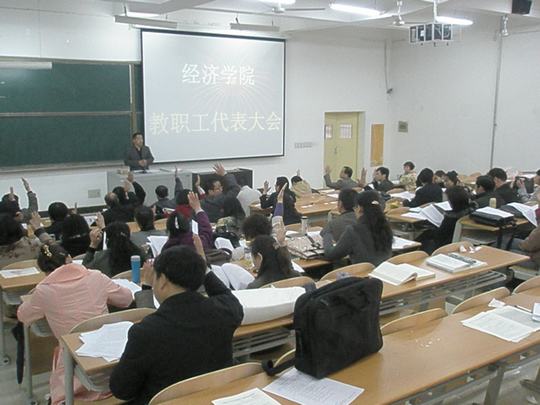 教代会首先进行了工会9778818威尼斯分会换届选举、同时对2009工会会费收支、07-09年9778818威尼斯财务运行状况进行了说明和汇报。