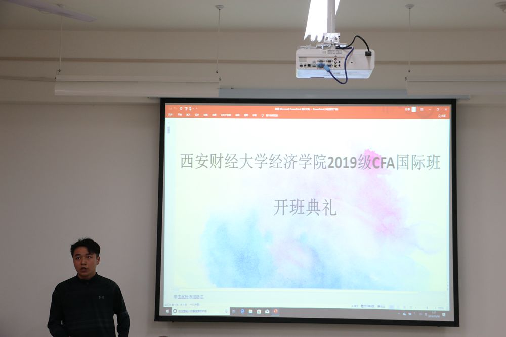 开班仪式上,CFA班授课教师代表发言,她讲到CFA国际班是在学院各级领导和老师的高度重视和密切关注下,经过反复调研和论证而最终设立的。CFA课程内容涉及广泛,实务性强且国际化程度高,对于本科学习阶段就开始CFA课程的学习是一件十分幸运的事,这将对学生未来的职业发展具有重要作用。她并借此机会向大家保证,全体CFA国际班教师一定会拿出自己最饱满的热情投入到CFA课程的日常教学当中,同时也希望同学们能够信赖老师,与老师建立良好的互动,快乐学习。