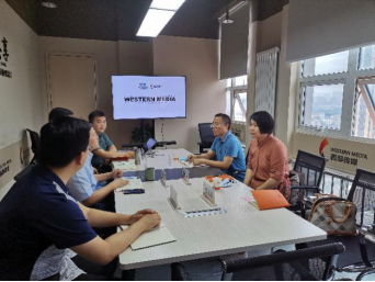会谈伊始,西部传媒公司首先进行了企业介绍,作为陕文投全资子公司,其目前涉及广告投放、跨境电商、整合营销、内容营销和营销赋能等五大业务板块,已成为西部有影响力的传媒公司。随后,张恒梅老师介绍了此行目的,旨在致力于产学深度融合并联合党建,加强校企在应用型高素质贸易人才培养、实习实训、就业创业等方面的交流与合作。进而,国贸系教师与西部传媒相关职能部门经理细致讨论了交流意向和途径,以期将来在数字经济、跨境电商、乡村经济振兴等方面加强产学研合作交流。最后,西部传媒总经理王保昌总结提出,希望以交流沟通为起点,双方共同努力,把西财大和西部传媒植下的“合作之树”浇灌培育成参天大树,合作成果硕果累累。