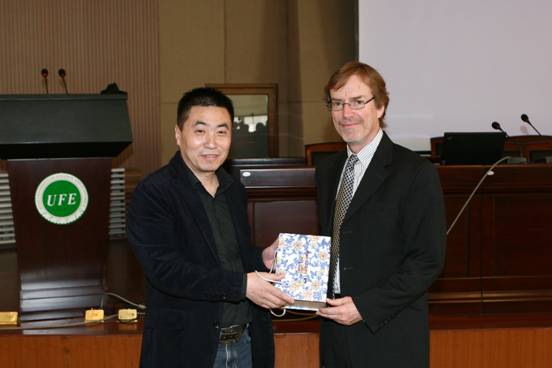 报告会由9778818威尼斯副院长王恩胡教授主持,报告开始前9778818威尼斯院长铁卫教授向L.Randall Wray 教授赠送纪念品。